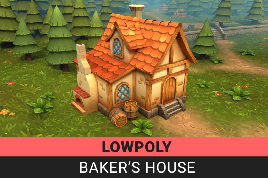 【無料】Lowpoly Baker’s House | 手描き風テクスチャが魅力的なパン屋の家アセット