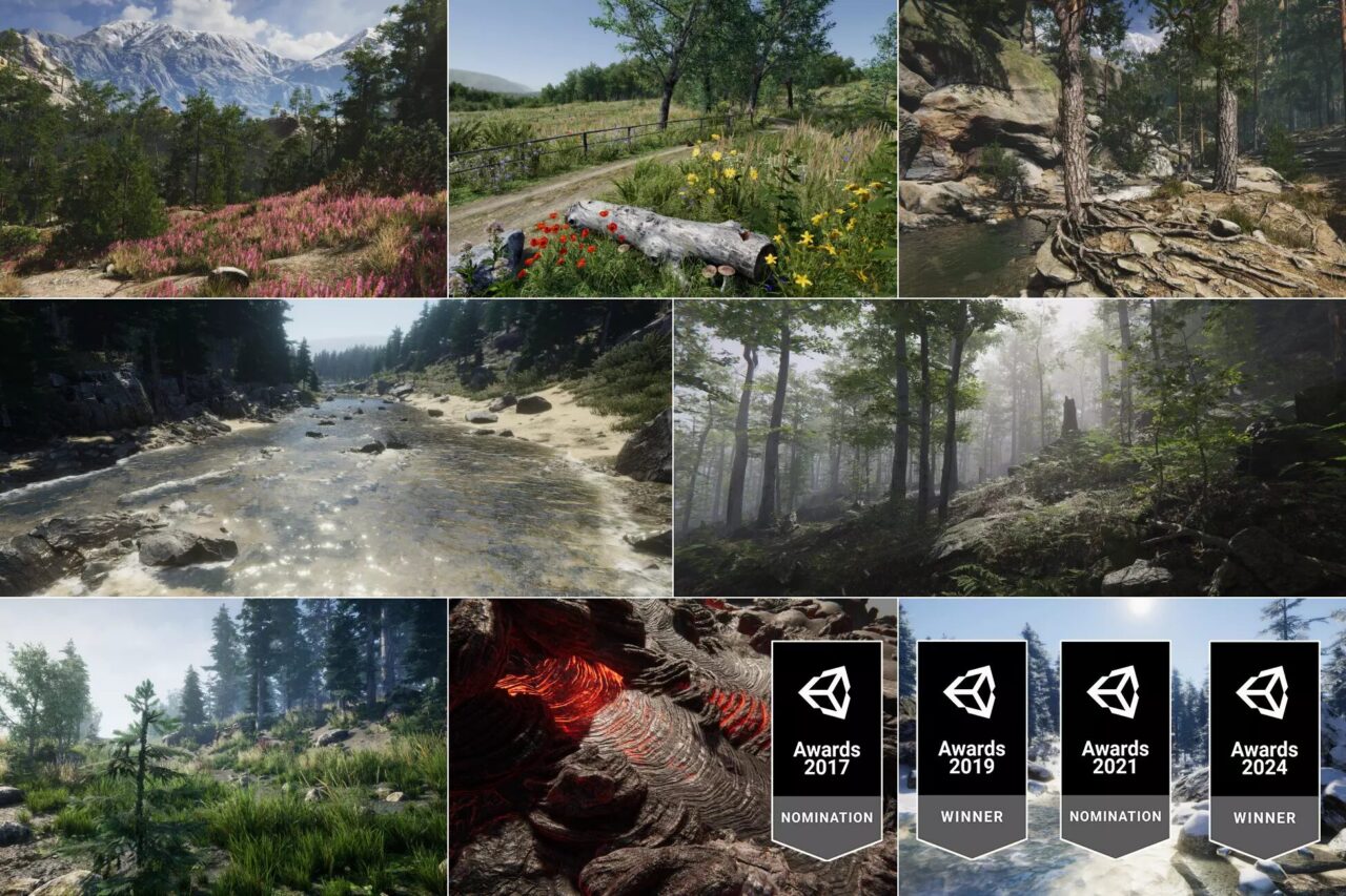 Nature Manufacture 開発の豪華なアセットバンドル「Environment Bundle – Dynamic Nature」をご紹介します。このバンドルは、山、森、草原、川、溶岩など、あなたのゲームに圧倒的なリアリティをもたらす自然環境アセットを網羅しています。