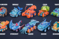 エイやサメ、カメといった海の生き物をベースにした 10 種類の車が含まれており、それぞれに専用のパーツが用意されています。あなたのゲームに個性的で楽しい雰囲気を与えたい時にぴったりな内容となっています。