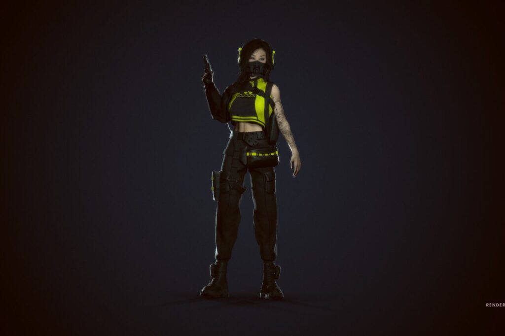Asian Cyberpunk Girl With Pistol:カスタマイズ可能な高品質サイバーパンク美少女 3D モデル