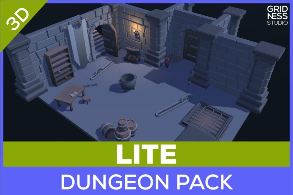 【無料】Lite Dungeon Pack – Low Poly 3D Art by Gridness 高品質なローポリダンジョン作成用アセット