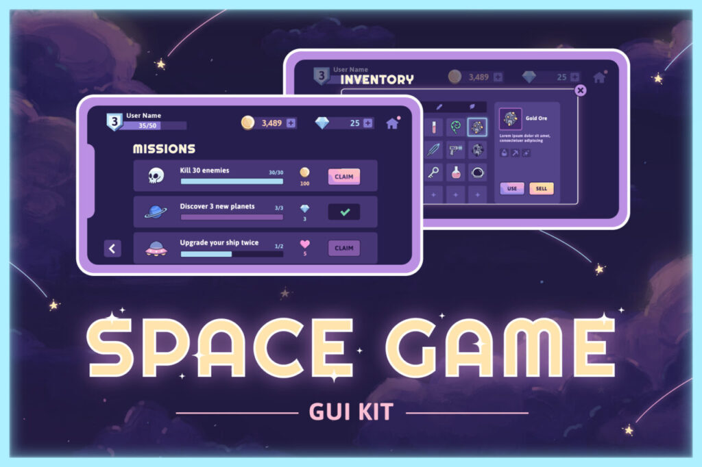 【無料】Space Game GUI kit | 宇宙をテーマにしたゲーム制作に最適な高品質 UI 素材セット