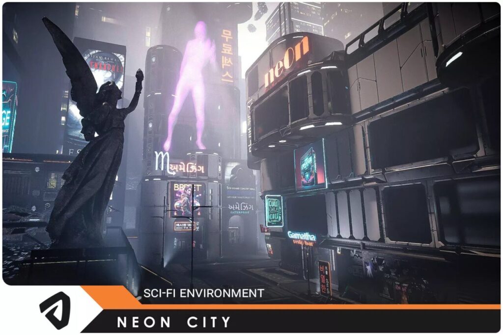SciFi Neon City – 920種類以上のパーツで自分だけのサイバーパンク都市を作れるアセット