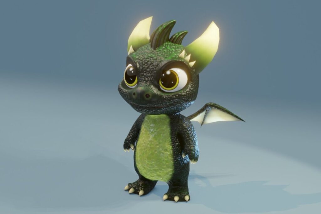 【SALE】 Cartoon Dark Green Baby Dragon 3D Model:可愛いドラゴンの 3D モデルが 30%オフ。2026年1月20日まで。