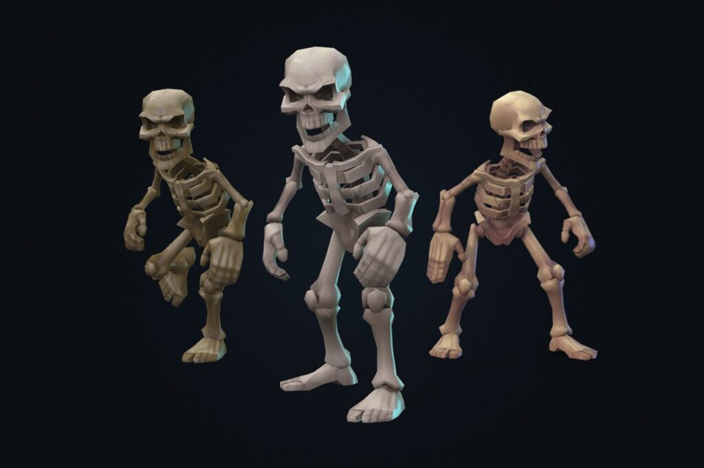 【無料】Stylized Free Skeleton:3色のカラー展開とアニメーション付きの骸骨モデル