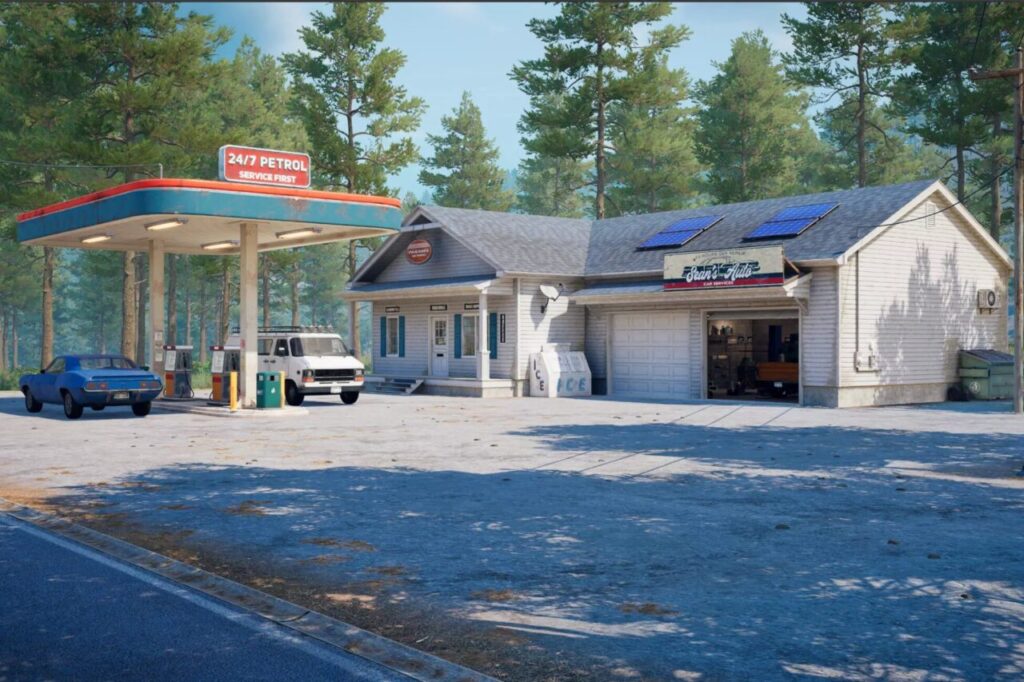 Rural Gas Station でリアルな田舎のガソリンスタンドを構築!松林に囲まれた高品質 3D アセット