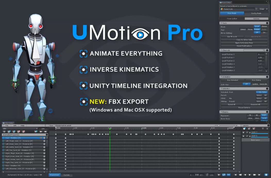 UMotion Pro – Animation Editor」は、Unity内で直接、あらゆる3Dモデルのアニメーションを作成できる高機能なエディタです。